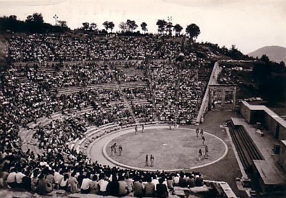 O teatro teve sua origem no século V a.C., na Grécia, surgindo das festas dionisíacas realizadas em homenagem ao deus Dionísio, deus do vinho, do teatro e da fertilidade. Essas festas, que eram rituais sagrados, procissões e recitais que duravam dias seguidos, aconteciam uma vez por ano na primavera, períodos em que se fazia a colheita do vinho naquela região. A peça de teatro era apresentada em palcos feitos de pedra, os atores usavam roupas acolchoadas, sapatos de solas altas e máscaras pintadas e engomadas para amplificar a voz.